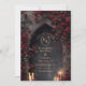 Abraçar o fascínio do romance escuro com este design de casamento gótico candelabro. Rosas profundos, lanternas tremendas e um arco pontiagudo enquadram seus nomes em elegância vintage. Perfeito para casais que procuram uma estética de casamento sangrenta, dramática e inesquecível.