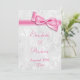 Convites de casamento elegantes. Um lindo fundo branco de cor damasco com espirros e floreios de ornamentado e uma imagem bonito, na moda, cinzenta e rosa-rosa e fita. Estes convites para casamentos glamourosos, chicos e clássicos são lindamente sofisticados e são decorados/impressos em ambos os lados. NOTE: Todos os convites no Zazzle têm imagens impressas em formato plano. Arcos e imagens de fitas adquiridas de designs digitais por elena. Se precisar de ajuda para personalizar o seu convite, entre em contato comigo na minha loja e eu ficarei feliz em ajudar.
