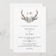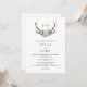 Este convite de casamento rústico de chic boho com chifres apresenta as iniciais monográficas da noiva e do noivo moldadas por chifres de fenda que são decorados com uma cor d'água azul empoeirada e buquê floral creme. Entre em contato comigo através do Zazzle Chat se você precisar de ajustes de design, mais produtos correspondentes ou outras formas de cores.