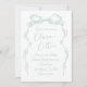 Cartões de convite de casamento elegantes apresentam arco de fita desenhado manualmente com fontes modernas de script manuscrito em verde-claro, limpo e simples. Excelente para casamento romântico moderno, casamento maravilhoso e divertido, casamento casual elegante. Veja todas as peças correspondentes na coleção.