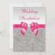 Convites de casamento elegantes, personalizados, cor-de-rosa-quente e prata, com lindas sequências de imagens impressas prateadas, joias, padrão de joias, arcos e fitas impressas cor-de-rosa giro, fofinhas e sofisticadas, e diamantes digitais bonito bordando joias e texto rosa-quente em um fundo de gradiente prateado.Observe que: Todos os convites no Zazzle têm imagens impressas em formato plano. Estes convites elegantes para casamentos são decorados de ambos os lados. Bonitos, na moda, quites, modismos, modernos, reluzentes e encantadores convites. O texto, a fonte e a cor da fonte podem ser personalizados. Se precisar de ajuda para personalizar seu produto, entre em contato comigo pela loja. Ficarei feliz em ajudar. Tenho produtos correspondentes na minha loja.