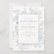 Convites Casamento de Arte com Linha Floral Azul Elegante D