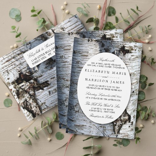 Estes convites são perfeitos para qualquer casal planejando uma festa de casamento rústica do país. O design apresenta um fundo de árvore de pássaros com uma camada oval branca e texto fácil de editar. O simples design pode ser personalizado para se adequar ao seu evento especial e será o anúncio perfeito para qualquer festa temática da floresta, incluindo chás de panela, noivados, chás de casamento, festas de aniversário e muito, muito mais.