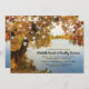 Convites de casamento elegantes no outono, com um belo lago estático, uma árvore rústica com folhas vermelhas, laranja e amarelas, luzes cintilantes de cordas, e um modelo de casamento moderno que é fácil de personalizar.