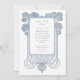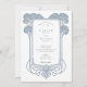 Anuncie seu casamento com sofisticação refinada usando este convite elegante inspirado na Arte Deco. O design apresenta árvores estilizadas e intrincadas escrolhas, renderizadas em uma delicada matiz azul sobre um fundo branco limpo. As árvores estilizadas lembram-se do período de deco da arte. O verso, para "Os detalhes mais finos", apresenta um layout complementar com a mesma árvore de na moda e elementos de rolagem que enquadram o texto. Esta suíte evoca uma sensação de glamour clássico e charme vintage. É ideal para casais que procuram um anúncio sofisticado, na moda e memorável para o seu casamento, perfeito para uma celebração formal ou de temas antigos.