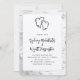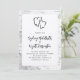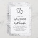 Dois corações, convites de casamento rústicos. Modelo moderno e casual com nomes em fontes de script divertidas. A fronteira e o verso são latido (design) de pássaros brancos com corações entrelaçados "entrelaçados" no topo. Mostrado com upgrades de cantos arredondados e papel especial - o que é fácil de mudar.