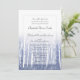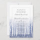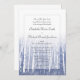 Um elegante convite de casamento temático de inverno que inclui um design de árvore de pássaros escancarados azul e branco.