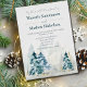 Convite de casamento com adoráveis aquarelas rústicas com lindas árvores verdes em blues claros e verdes. Com tipografia que você pode personalizar facilmente. Perfeito para um casamento no inverno.