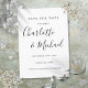 Apresentando nomes de estilo de assinatura, esta cinza elegante e branca para salvar o cartão de data pode ser personalizada com suas informações especiais de dia de casamento em caracteres de cinza. Projetado por Thisnotme©