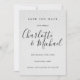 Apresentando nomes de estilo de assinatura em um fundo de papel de aquarela texturizado. Esta cinza elegante e branca para salvar o cartão de data pode ser personalizada com suas informações especiais de evento em caracteres negros quentes. Projetado por Thisnotme©