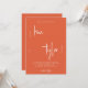 A elegante trendy escreveu convite para casamento num simples e brilhante pôr de sol laranja com os nomes de noiva e noivo com o roteiro de caligrafia. ++++++++++++++++++++++ Você pode alterar as cores do texto e do plano de fundo após selecionar a opção PERSONALIZAR mais. ++++++++ O convite é adequado para cerimônias e recepções de casamento informais de estilo moderno.