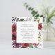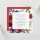 Belo convite de casamento botânico quadrado com uma fronteira floral vermelha. Rosas vermelhas brilhantes e flores de burgundy fazem deste um convite perfeito para o casamento no outono.
