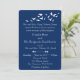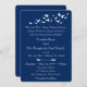 Design de convite simples e elegante, totalmente personalizável. O bando de pássaros é branco e tem um fundo transparente para que você possa mudar a cor do impressão de papel para corresponder ao seu tema de evento. Todas as áreas de texto podem ser personalizadas. Há um pequeno conjunto de pássaros no canto traseiro que pode ser usado em acessórios de eventos correspondentes para completar o tema. O fundo azul padrão é excelente para casamentos costeiros, ou casamentos judeus.
