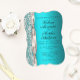Um belo, brilhante aqua e convite para casamento branco, apresenta uma bonito cor aqua/turquesa metálica com uma borda branca na borda, cheia de fitas brancas de satin. O reverso apresenta o padrão de local em toda a placa.
