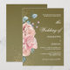 Verde-Oliva-Vidro e modelo de Casamento Rosa-Esbranquiçado Apresenta fundo verde-oliva, arranjo floral cor-de-água pincelada e texto.Um design perfeito para impressionar seu convidado.Combina com o tema do casamento como verde, rústico, botânico, romântico.Clique no botão personalizar para personalizá-lo com seu texto.Visite gentilmente minha loja " loveyouart" para outros ou designs semelhantes .
