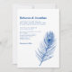 O cartão de convite para casamento de design mínima apresenta uma elegante ilustração de linha de pena de pavão com um tema de cor azul real. Design tipográfico moderno e limpo, este convite para o dia do casamento está pronto para você personalizar com os detalhes do seu dia especial. Parte de um leque cada vez maior de artigos de papelaria.