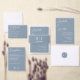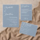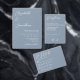 Coleção de casamento elegante monograma em azul empoeirado e branco com suas iniciais em texto minimalista tradicional.