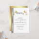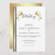Linhas verticais claras e simples, pretas e douradas do lado esquerdo e flores douradas sobre fundo branco