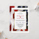 O moderno Patriótico EUA Flag Dourado Frame Wedding design com quadro de bandeira dos EUA com traço dourado, roteiro vermelho e azul sobre fundo branco e fundo de bandeira dos EUA no verso. Use a ferramenta Personalizar para adicionar suas informações. Para obter itens correspondentes, visite minha Coleção de Casamentos de Quadros Dourados com Sinalizador Elegante USA.