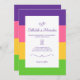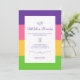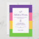 Esta design apresenta as cores ousadas e lindamente fortes da bandeira safáfica, anéis de casamento e roxo para um convite de casamento moderno. A bandeira sápica une as mulheres no seu amor umas pelas outras, sejam elas lésbicas, lésbicas multiespeculativas ou bissexuais. Você pode facilmente alterar o texto e seus detalhes clicando no botão personalizar.