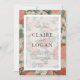 Este convite de casamento chico e elegante apresenta um fundo bronzeado/bege com flores florais/florais asiáticas/chinesas/coreanas/japonesas, como um crisântemo e peônia, e padrões de borboletas. O verso apresenta um fundo vermelho. Personalize-o para as suas necessidades. Você pode encontrar produtos correspondentes na minha loja.