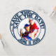 Cartões de convite redondos com tema de casamento de beisebol. Este é personalizado para um cliente específico. A frente do cartão é uma moldura/inserção de foto. Anéis azuis interno e externo com uma foto personalizada no centro. Círculos de texto em vidro decorativo na parte superior e diz: SALVE A DATA. Mais círculos de texto em vidro na parte inferior e mostra a data do casamento dos clientes. Este texto está em ambos os lados do cartão. O fundo da borda externa é de listras azuis e brancas de beisebol. No verso do cartão, você tem o mesmo texto na parte superior e inferior em um fundo listrado. Pequenos enfeites de coração vermelho estão entre as palavras. O fundo do centro é branco sólido com bolas de beisebol espalhadas por toda parte. O texto decorativo em vidro diz: Mathew Howard e Sylvia Newcomb estão subindo para o home plate e apostando 1000 que seu amor vai durar para sempre. As equipes se fundirão em uma em 11 de junho de 2016. Os convites de casamento com tema de be