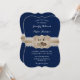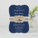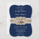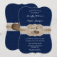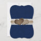 Convite de casamento azul marinho burlap corações em um fundo de burlap e renda.