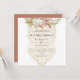 "Bu Blush Floral Greenery Pampas Grass com Macrame pendurado em segundo plano Convite de Casamento." A suíte de convite de casamento do estilo Trendy Natural, Botânica BOHO foi pintada em aquarela pela artista internacionalmente licenciada Audrey Jeanne Roberts. A cor de fundo da terra cotta está bem em tendência e é emparelhada com flores rosas, flores brancas de orquídea, folhagem de palma e folha em curtimenta e castanho com grama-pampas. Direitos autorais.