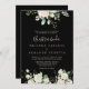 Este convite de casamento para a nuestra floral de marfim moderno é perfeito para um casamento rústico. A design apresenta flores rosa de cor branca marfim com de cor aquosa com folhas verdes de eucalipto bem arrumadas em buquês que chamam a atenção.