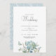 Este convite de casamento boêmico é simples, elegante e embalado com uma variedade de flores azuis. Personalize facilmente este cartão com as suas informações e complete a aparência com as muitas outras opções de papelaria e acessórios para o seu casamento de primavera ou verão. Baseado em uma cor d'água original por © Lisa Audit Art. Envolva-se com arte animadora.