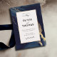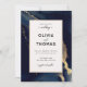 Uma praia, modelo de convite para casamento oceânico que apresenta uma cor d'água pintada, abstrato com ondas azuis marinhos com efeito de tinta dourada (o ouro é um efeito digital, não uma folha de papel real!). Clássico e elegante, simples e moderno, é uma escolha encantadora para um casamento de praia de outono ou inverno - ou simplesmente um casamento de outono, inverno ou qualquer hora para um casal que ama azul marinho e design moderno.