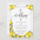 Este belo convite para o casamento apresenta limões brilhantes com flores lavandas e um roteiro elegante numa fina estrutura roxa. Você pode personalizar o texto no convite para se adequar às suas informações pessoais. A parte traseira apresenta cor d'água amarela ombre.