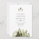 Este convite para o casamento contém pinheiros verde-aquarela rusticados e uma fonte manuscrita boêmica. Edite todos os textos e fontes para corresponder ao seu estilo de casamento. Altere a foto no verso para adicionar um toque pessoal. Este convite de casamento é perfeito para o seu casamento na montanha ou na floresta.