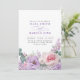 Um convite de casamento maravilhoso de vassoura com elegantes florais de cor d'água roxas, lindamente emparelhado com sotaques cor-de-rosa macio para uma paleta de cores romântica e artística.