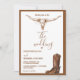 Prepare-se para discutir um entusiasmo com nosso convite de Casamento de Cowboy Ocidental! Esta design única e encantadora acrescenta o fascínio rústico do Oeste Selvagem aos seus preparativos para o casamento, estabelecendo o tom para uma celebração tão real como a sua história de amor.