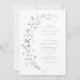 Flores silvestres de cor aquática delicadas e elegantes, ao lado de seus detalhes de eventos. Paletas de pastel de amarelo macio, branco esbranquiçado, verde-sábio, azul empoeirado e verde botânico, simples e romântico. Convites de casamento floral de excelente para casamento rústico moderno, casamento de jardim do país e casamento de boho em primavera e verão.