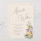 Este convite para o casamento floral do boho moderno apresenta um design minimalista focado nos nomes da noiva e do noivo em uma delicada letra de escrita caprichosa. É decorada com um buquê de flores silvestres coloridas de aquarelas, e tem um fundo bege. Por favor, verifique a coleção para o resto do pacote de convites de casamento correspondente e mais produtos correspondentes.