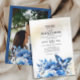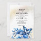 Convite para casamento Elegante, azul e branco, floral e borboleta, personalizado com uma foto no verso. Todos os textos podem ser personalizados para suas necessidades pessoais. Entre em contato comigo para obter assistência com suas personalizações ou para solicitar outros produtos Zazzle correspondentes ou coordenadores para seu(s) evento(s)
