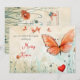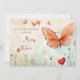 Este design de convite oferece cores suaves e sensação relaxada com seu estilo pastoral de aquarela. Ela apresenta uma borboleta rosa grande na frente acompanhada por um coração vermelho representando o amor entre a noiva e o noivo, e flores de primavera coloridas pastel nas costas.