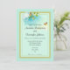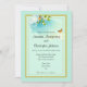 Uma natureza elegante temia convite de casamento. Um fundo abstrato com círculos e formas irregulares. A cor é verde-verão calmante, turquesa e amarelo em cores pastéis leves. Um casal de borboletas laranja e amarelas pairando em torno de algumas flores delicadas, floridas, com folhas verdes e ramos marrons. Tem um olhar encantador e mágico. Uma camada transparente bordada em ouro no centro mostra todas as suas informações de casamento. O fundo é verde-menta.