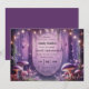 Convide seus convidados para um mundo de magia e romance com este convite de casamento da Borboleta Púrpura e do Céu Estrelado. Apresentando uma floresta sonhadora iluminada por leves de cordas suaves, cogumelos brilhantes e delicadas borboletas floreantes, esta design encantadora estabelece o tom perfeito para uma floresta balnear ou uma celebração inspirada em conto de fadas. A lavanda suave e a matiz violeta criam um pano de fundo etéreo para os seus detalhes de casamento, fazer que seja um guardião inesquecível para os seus entes queridos. Ideal para casamentos de floresta encantados, cerimônias de jardins brancos, ou celebrações mágicas da noite, este convite combina elegância com um toque de fantasia — perfeito para casais que querem seu grande dia se sentir como se estivessem entrando num livro de histórias.
