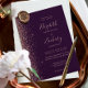 A margem esquerda deste elegante convite de casamento moderno apresenta um rosa dourado faux glitter design. O texto personalizável combina letras rosa pálidas, letras em copperplate e fontes itálicas em um fundo roxo escuro. O verso apresenta um design brilhante roxo e rosa.
