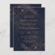 Design de Casamento de Borda Floral de Folha Azul e Rosa marinho Gold com flores desenhadas à mão, Folhas e fundo de aquarela. Um chic e um moderno Procure por um outono ou casamento no inverno, com paleta de cores ousadas: azul Marinho e detalhes de folha falsa ouro rosa. Elementos Florais desenhados à mão, Fonte moderna do Script de tendências - Convites personalizados para casamento! Veja meu compro para ver a suíte de casamento inteira para este design!