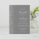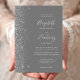 A margem esquerda deste elegante convite de casamento moderno apresenta um design de cintilação de prata. O texto personalizável combina a escrita manual de cinzas prateadas, fontes copperplate e itálico em um fundo de cinza. O verso apresenta uma cinza e um design cintilante prateado.