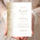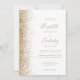 A borda esquerda deste elegante convite de casamento moderno apresenta um design dourado falso. O texto personalizável combina manuscrito dourado, fontes em copperplate e itálico em um fundo branco. O verso apresenta um design de brilho branco e dourado correspondente.