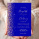 A margem esquerda deste elegante convite de casamento moderno apresenta um rosa dourado faux glitter design. O texto personalizável combina letras rosa pálidas, letras em copperplate e fontes itálicas em um fundo azul real. O verso apresenta um design brilhante azul real e rosa.