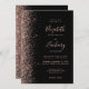 A margem esquerda deste elegante convite de casamento moderno apresenta um rosa dourado faux glitter design. O texto personalizável combina letra rosa pálida, letra copperplate e letra itálico num fundo preto. O verso apresenta um design brilhante rosa e preto correspondente.