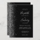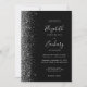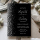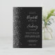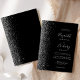 A margem esquerda deste elegante convite de casamento moderno apresenta um design de cintilação de prata. O texto personalizável combina a escrita manual de cinzas prateadas, fontes copperplate e itálico em um fundo preto. O verso apresenta um design brilhante preto e prateado correspondente.
