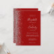 A margem esquerda deste elegante convite de casamento moderno apresenta um design de cintilação de prata. O texto personalizável combina a escrita manual de cinzas prateadas, fontes copperplate e itálico em um fundo vermelho crítico. O verso apresenta um design brilhante vermelho e prateado correspondente.