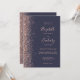 A margem esquerda deste elegante convite de casamento moderno apresenta um rosa dourado faux glitter design. O texto personalizável combina manuscrito colorido de rosa pálido, fontes copperplate e itálico em um fundo azul escuro. O verso apresenta um design brilhante rosa e preto correspondente.